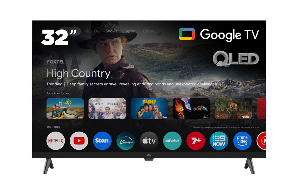 The EKO 32'' Full HD QLED Google TV delivers stunning visuals with vibrant QLED technology and crisp Full High Definition resolution. Enjoy seamless streaming with built-in Google Cast, Netflix, YouTube, and Prime Video. Voice control is effortless with "Hey Google," while Google Play offers endless entertainment. The sleek frameless design enhances any space, and PVR lets you record your favorite shows. Connect easily with HDMI and ARC for an immersive experience.